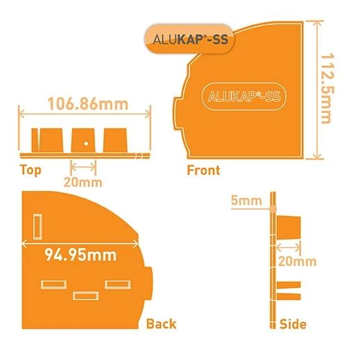 Alukap-SS Wall & Eaves Beam Endcap LH – All Colours system is manufactured to perform excellently with glazing at almost any angle. The Alukap®-SS Wall Plate is secured to the back of the wall at the desired height, and then using the Alukap®-SS Cap profile to abut the Alukap®-SS Wall Plate, the Alukap®-SS High Span or Low Profile bars simply bolt on to the Alukap®-SS Wall plate through the concealed fixing flange.