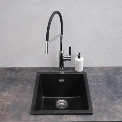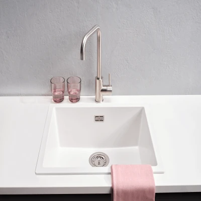 The Amsterdam 40 1 Bowl Granite Composite Kitchen Sink is a stylish and functional addition to any kitchen. This inset sink features a single bowl, making it perfect for smaller spaces. Made from durable granite composite material, this sink is built to last. The square shape adds a modern touch to your kitchen, while the 90mm BSW waste ensures efficient drainage. With an included overflow and no tap hole, this sink offers convenience and versatility. The dimensions of the sink are 450mm in length, 450mm in width, and 216mm in depth. The main bowl size is 400x400x200mm, providing ample space for all your kitchen needs. The inner and outer radii are both 10mm, adding to the sleek design. This sink is manufactured in Poland and comes with a 10-year guarantee for peace of mind.