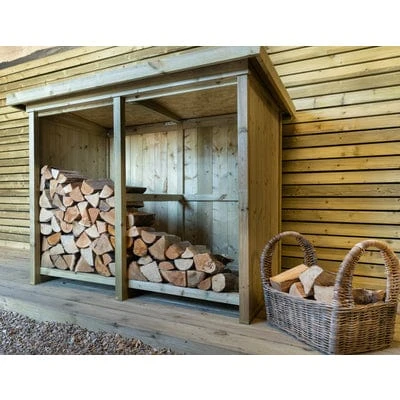 The store itself is constructed from redwood which has been pressure treated so that rot and decay will not shorten its life, and is waterproofed by mineral felt, so your wood is kept perfectly dry.