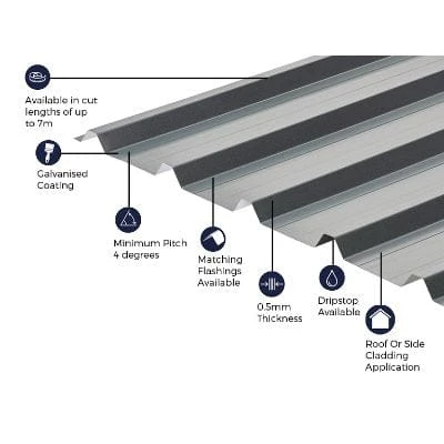 Our 32/1000 box profile 0.5 thick roofing sheets, sometimes referred to as single skin box profile sheets are often used for side cladding on buildings. The design of 32/1000 gives a robust profile roofing sheet strength.