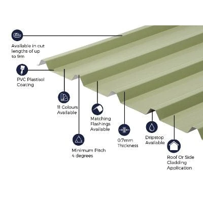 Our 0.7mm thick single skin box profile PVC roof sheets give robust strength roofing sheets. Incorporating 6 x 200mm pitched profiles across the width of the sheet and 32mm profile height the roofing sheets work in both a domestic and a commercial environment.