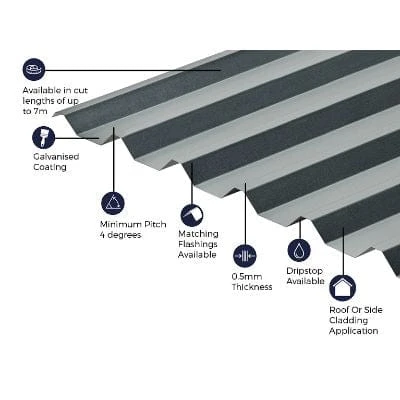 34/1000 box profile 0.5 thick galvanised roofing sheets are one of our most popular sheets, with each single skin sheet having 7 strong 166mm profiles across its width. With a profile height of 34mm and coverage of 1000mm when installed, these 34/1000 box profile sheets give you a simple yet strong way to cover your build.