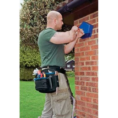 Expert quality, rigid nylon, reinforced with rivets. Comprises two large pouches, three smaller pouches, measuring tape clasp, hammer loop, four leather tool holders and nylon tool holder. Supplied with 50mm fully adjustable fast click webbing belt.