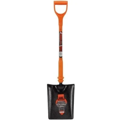 Fully insulated taper mouth shovel designed for working on or near live cable and wires. Individually tested to 10,000 volts, guaranteeing safe working on 1,000V and complying to the BS 8020: 2011 standards.