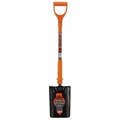 Expert Quality, fully insulated trenching mouth shovel designed for working near live cable and wires. Individually tested to 10,000V, guaranteeing safe working on 1,000V and complying to the BS 8020 standards.