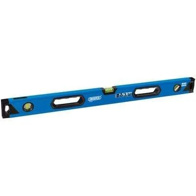 Draper Side View Box Section Level is a high quality. Aluminium box section levels with three permanently fixed, the level are shock resistant, acrylic UV resistant vials, one horizontal vial, one vertical, and one 45° vial, one with side view vial feature. Precision milled top and bottom. Levels are electro statically epoxy powder coated and baked for maximum protection. Fitted with shock-absorbing end caps. Accuracy of 0.5mm per 1M = 0.029° in standard position. Manufactured with quality in mind and comes with our guarantee.