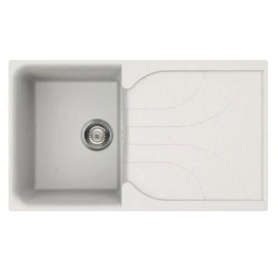 The Ego 400 Elleci Granite 1 Bowl Kitchen Sink is a stylish and functional addition to any kitchen. With its inset mounting method, this sink is easy to install and fits seamlessly into your countertop. The single bowl design provides ample space for all your washing and cleaning needs. Made from durable granite material, this sink is built to last and withstand daily use. The square shape adds a modern touch to your kitchen decor. The Ego 400 Elleci Granite 1 Bowl Kitchen Sink is available in a range of colors to suit your personal style and preferences. It also features a 90mm BSW waste and includes an overflow for added convenience. The two pre-punched tap holes allow for easy installation of your choice of taps. Plus, this sink is reversible, allowing you to position it to best fit your kitchen layout. With a length of 860mm, width of 500mm, and depth of 230mm, this sink offers plenty of space for all your kitchen tasks. The main bowl size is 340x430x230mm, providing ample room for washing dishes and preparing food. The 10mm material thickness ensures durability and longevity. The Ego 400 Elleci Granite 1 Bowl Kitchen Sink is made in Italy and comes with a 10-year guarantee for peace of mind.