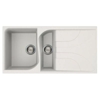 The Ego 475 Elleci Granite 1.5 Bowl Kitchen Sink is a versatile and stylish addition to any kitchen. With its inset mounting method, this sink is easy to install and fits seamlessly into your countertop. The sink features 1.5 bowls, providing ample space for all your kitchen tasks. Made from durable granite material, this sink is built to last and withstand daily use. The square shape adds a modern touch to your kitchen decor. The sink comes in a variety of colors to suit your personal style. It also includes an overflow and two pre-punched tap holes for added convenience. Plus, it is reversible, allowing you to choose the configuration that works best for your kitchen layout. With a length of 1000mm, width of 500mm, and depth of 230/170mm, this sink offers plenty of space for washing dishes and preparing food. The main bowl size is 330x430x230mm, while the half bowl size is 140x430x170mm. The sink is 10mm thick, ensuring durability and longevity. It is designed to fit a 90mm BSW waste and comes with all the necessary connections and clips. Made in Italy, this sink is of the highest quality and comes with a 10-year guarantee.