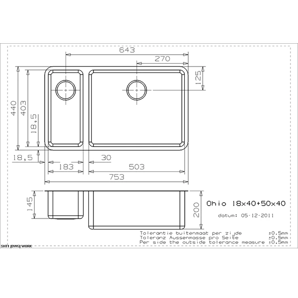 The Elite Ohio 18 x 40 + 50 x 40 L Stainless Steel Integrated Kitchen Sink is a versatile and high-quality addition to any kitchen. With its integrated, semi-integrated, and undermount mounting options, this sink can be seamlessly incorporated into any countertop. The sink features a 1.5 bowl design, with a main bowl size of 503x403x200mm and a half bowl size of 183x403x145mm. The stainless steel (304) construction ensures durability and resistance to corrosion, while the matt inox finish adds a sleek and modern touch. The sink also includes a 90mm BSW x 2 waste system with an overflow, providing efficient drainage. With a lifetime guarantee and a country of origin in the Netherlands, this sink is built to last and meet the highest standards of quality.