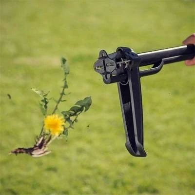Sturdy weed puller with three serrated, stainless-steel claws that firmly grab weeds and roots. Easy-eject mechanism on the handle clears tool without forcing you to bend over and remove it by hand. Long handle makes weeding easy for anyone who has trouble kneeling or bending.