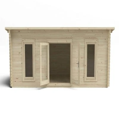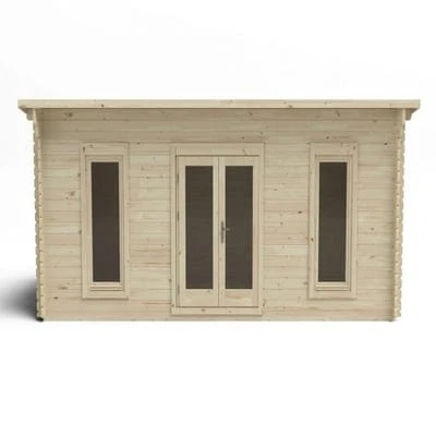 The Arley Log Cabin is one of three 6-metre wide log cabins from Forest Garden. This model has a 6m wide x 3m deep footprint and contemporary pent roof design. The 6 metre width maximises the use of the width of your garden or plot without taking up a lot of depth and provides enough front aspect for two glazed double doors plus three 3/4 length windows which ensures the cabin gets plenty of natural light.