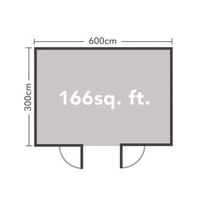- 6 metre wide log cabin with 166 square feet of floorspace