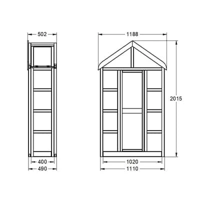 The tall and slender panes let in lots of light for your plants and one opening window with auto vent enables you to help keep the temperature and air flow at an appropriate level.