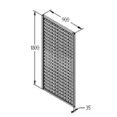 Square-edged, smooth-planed battens that are 6mm thick and 30mm wide are overlaid 45mm apart. These are mounted in a substantial rebated perimeter frame which is also smooth-planed. Designed primarily for mounting to an external wall or fence to create a garden feature that can support climbing plants.