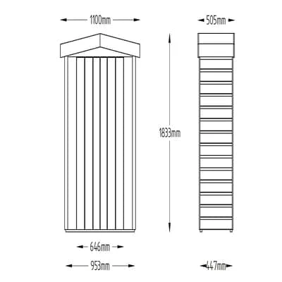 The stylish Shiplap Tall Garden Store from Forest has a 750 litre capacity which makes it ideal for storing a wide range of outdoor equipment. With a roof height of just under six foot it is perfect for storing long handled gardening tools, barbeques or folding furniture. A relatively small footprint means it is perfect for positioning against a wall or fence and with its natural colour finish, it will blend attractively into any garden.