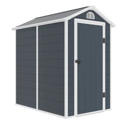 The Jasmine 4ft x 6ft Plastic Apex Shed with Foundation Kit is the perfect storage solution for your outdoor space. With its dimensions of 1920mm in length, 1340mm in width, and 2040mm in height, this shed provides ample space for all your gardening tools, equipment, and other belongings. Made from durable plastic material, it is built to withstand the elements and provide long-lasting protection for your items. The shed comes in a stylish anthracite grey colour, adding a modern touch to your garden. Its apex roof shape ensures efficient water drainage, keeping your belongings safe and dry.