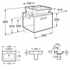 Roca The Gap 450mm Wall Hung Cloakroom Basin With Fixing Kit 1 Tap Hole