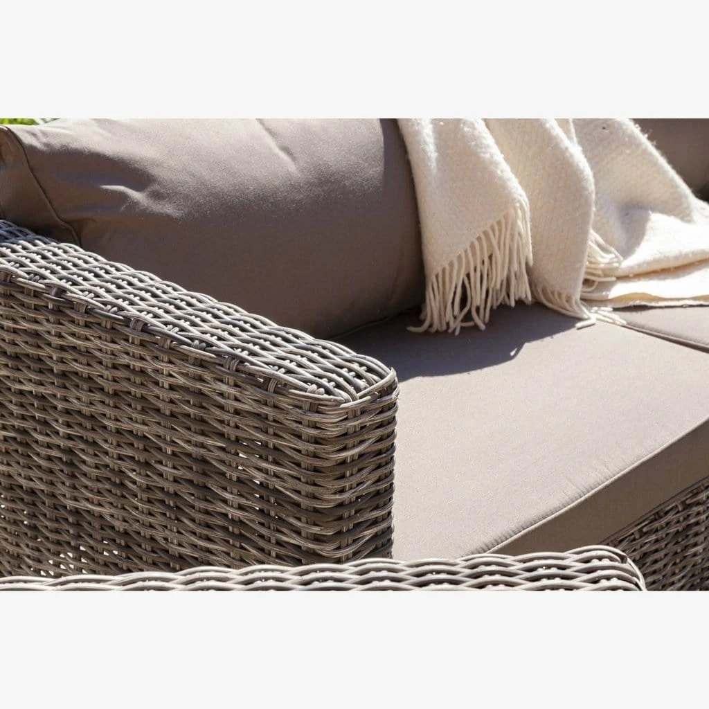 The Livingstone sofa set is designed with luxury All-weather rattan, crafted from a high quality plastic natural weave with varied texture and tone. All cushion covers are machine washable and made exclusively of the highest quality showerproof materials.