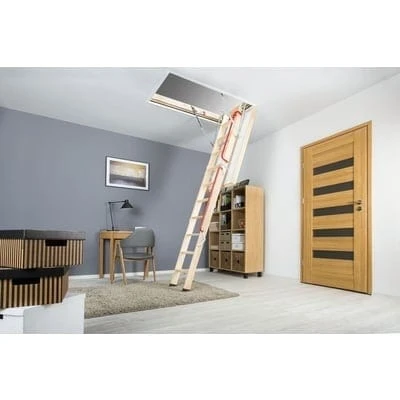 Introducing the LWL Extra Wooden Loft Ladder with Unfolding Support Mechanism, a perfect blend of functionality and elegance for your home. Crafted from high-quality wood and finished in beautiful timber, this loft ladder not only provides a sturdy and reliable access solution but also adds a touch of natural charm to your interior. The double sealing system ensures airtightness, contributing to better insulation and energy efficiency in your living space.