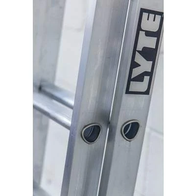 The LytePro Trade Double Extension ladder has been designed for trade use, perfect for light use. Made from aluminium. This extension ladder from Lyte Ladders comes fitted with a stabiliser bar for added security and comfortable D Shaped rungs. Made in Britain and has a maximum load of 150kg. The Lyte NGS ensures improved stability, durability, and safety as well as reduced risk and the ability to withstand heavy forces.