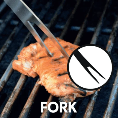 The HALMO 2PC Magnetic Tool Set is the perfect companion for outdoor cooking. Crafted with stainless steel and ergonomic handles, the two pieces can be combined to create tongs and servers, or used individually for a fork and spatula. The magnetic design also allows the tools to be hung or attached to any magnetic surface for easy storage.