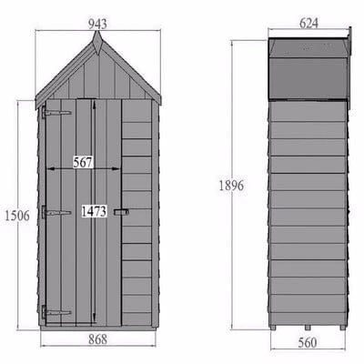 Although over 6ft tall, it has a compact design and is very sturdily made with room enough for all kinds of tools and equipment, keeping them protected from the effects of wind and rain behind a bolted door.