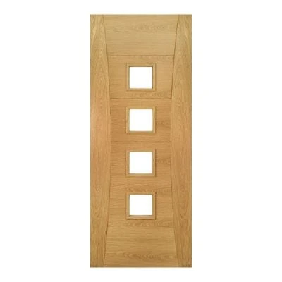 The contrasting orientation shows off the grain pattern to its best advantage, and the contrast is strikingly accentuated by the gentle curves of the vertical veneers, which carve a subtle waist into the horizontals. In the glazed door, four square panes of clear toughened glass are set neatly into the veneer panels.