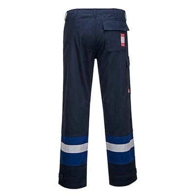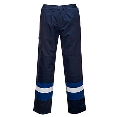 This trouser is constructed with high visibility reflective tape double stitched for enhanced visibility. Features include triple stitched seams, high visibility strips on legs, knee pad pockets, ruler pocket, front fly brass zip and adjustable bottom leg opening.