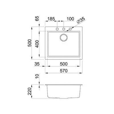 What is the minimum cabinet size required for this sink? To accommodate this sink, a minimum cabinet size of 600mm is recommended, providing flexibility in your kitchen layout.