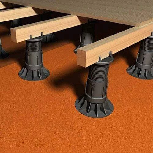 The pedestals can support all conventional decking and flooring joist types, including I-Joists, H-Joists, LVLs, and timber beams.