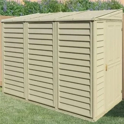 The Saffron 4ft x 8ft Lean-To Vinyl Garden Shed with Foundation Kit is the perfect addition to any garden or outdoor space. With its compact size and sleek design, this shed provides ample storage space while seamlessly blending into its surroundings. Made from durable plastic material, this shed is built to withstand the elements and provide long-lasting durability. The vinyl beige colour adds a touch of elegance to any outdoor area, making it a stylish and functional storage solution.