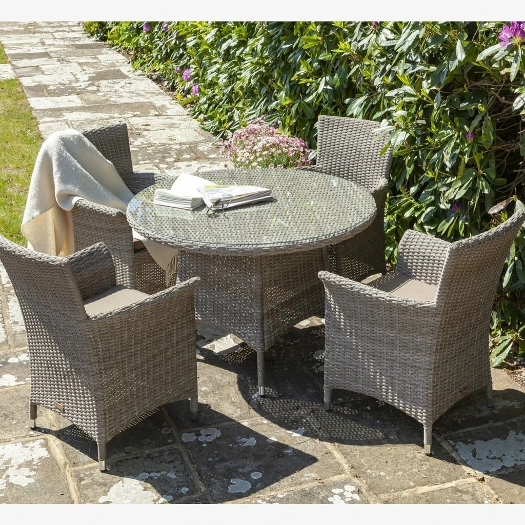 The Serica dining set is designed with luxury All-weather rattan, crafted from a high quality natural weave with varied tones. All cushion covers are machine washable and made exclusively of the highest quality showerproof materials.