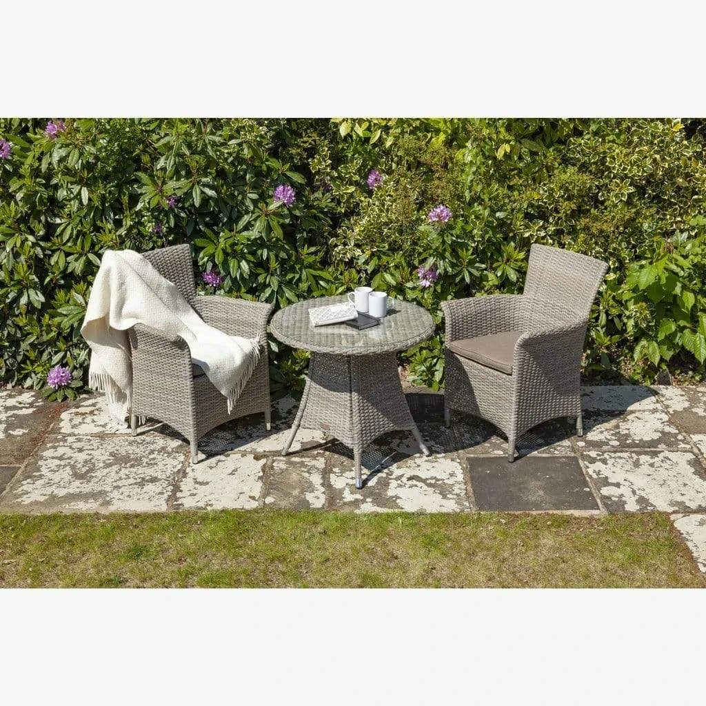 The Serica bistro set is designed with luxury All-weather rattan, crafted from a high quality natural weave with varied tones. All cushion covers are machine washable and made exclusively of the highest quality showerproof materials.