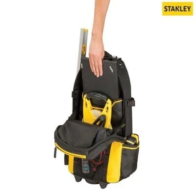 The FatMax backpack combines a mix of on wheels and on back carriage for easy and convenient tool transporting. Made from heavy duty 600 denier fabric for long lasting durability and has an extendable metal handle for easy transportation.