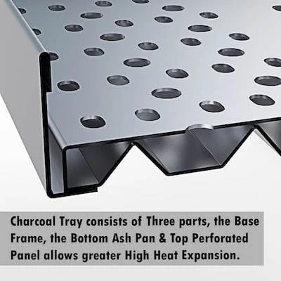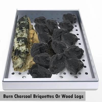 This charcoal wood burning tray features a triple layered construction allowing you to burn charcoal/smoke & wood logs within this convertible burn tray. Convert your gas grill into a gas charcoal hybrid with superior versatility. The sturdy material and three component construction ensures it will not warp in high heat usage.