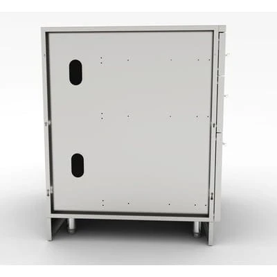 For easy utility installation there are multiple access ports, covered by black snap-in plastic covers which allows unit to stay as tightly sealed as possible without compromising integrity of the cabinet.