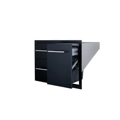 Three Large Drawers provide easy access for all your larger BBQ Sauces, Towels, or BBQ Tools plus the versatile right side Pull-Out Tray Drawer works perfectly for a Loose Trash Bag with the included adjustable Trash Ring. All drawer tracks feature High-End Soft-Closing Tracks.