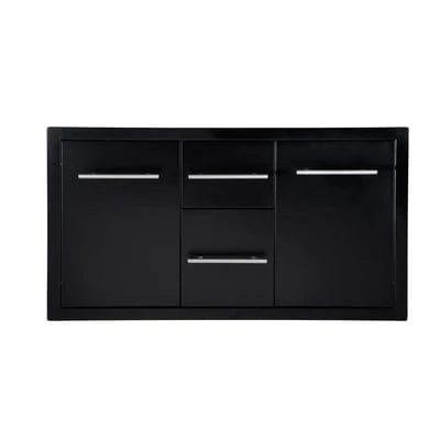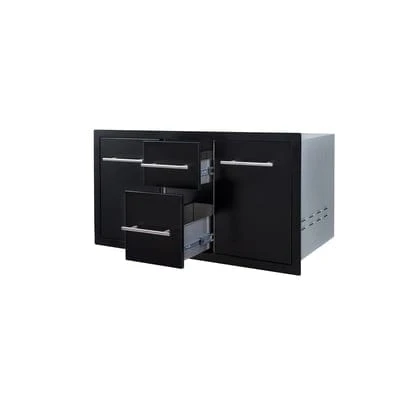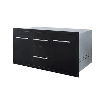 The Sunstone 42” Multi-Storage Combo has absolutely everything needed for your outdoor kitchen, featuring one of the largest all in one solutions with two spacious center drawers, a roll out drawer for storing a trash bin on the right side and a multi-levelled full-height drawer with an interior stationary shelf on the left side.