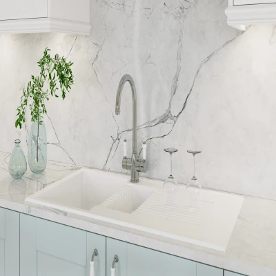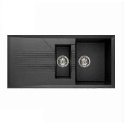 The Tekno 475 1.5 Bowl Granite Composite Kitchen Sink is a high-quality and versatile addition to any kitchen. With its inset mounting method and square shape, this sink is designed to seamlessly integrate into your countertop. The sink features 1.5 bowls, providing ample space for all your kitchen tasks. Made from durable granite composite material, this sink is built to withstand daily use and resist scratches, stains, and heat. The 90mm BSW x 2 waste system ensures efficient drainage, while the included overflow prevents water from overflowing. The sink also comes with 2 pre-punched tap holes, allowing for easy installation of your preferred faucet. Plus, it is reversible, giving you the flexibility to choose the best configuration for your kitchen layout. With its generous dimensions of 1000mm length, 500mm width, and 230/175mm depth, this sink offers plenty of room for washing dishes and preparing food. The main bowl measures 330x430x230mm, while the half bowl measures 150x315x175mm. Made in Italy and backed by a 10-year guarantee, the Tekno 475 1.5 Bowl Granite Composite Kitchen Sink is a reliable and stylish choice for your kitchen.