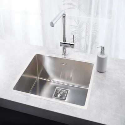 The Texas Integrated Stainless Steel Kitchen Sink is a versatile and durable addition to any kitchen. Made from high-quality stainless steel (304), this sink is built to last and withstand daily use. The matt inox finish adds a sleek and modern touch to your kitchen decor. With its square shape and integrated, semi-integrated, or undermount mounting options, this sink seamlessly blends into your countertop for a seamless look. The sink features a single bowl design, with a 90mm BSW waste and an included overflow for added convenience. It does not have a tap hole and is not reversible. The sink is manufactured in the Netherlands and comes with a lifetime guarantee for peace of mind.