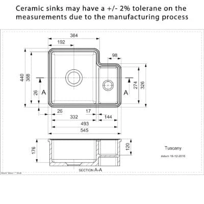 The Tuscany Ceramic 1.5 Bowl Kitchen Sink is a stylish and functional addition to any kitchen. Made from high-quality ceramic, this sink is built to last and withstand daily use. The glazed finish adds a touch of elegance and makes it easy to clean and maintain. With its square shape and undermount mounting method, it seamlessly integrates into your countertop for a sleek and seamless look. The sink features 1.5 bowls, providing ample space for washing dishes and preparing food. The main bowl has a generous size of 330x458x195mm, while the half bowl measures 147x330x175mm. The sink also includes an overflow, ensuring that water doesn’t overflow and cause any mess. The Tuscany Ceramic 1.5 Bowl Kitchen Sink is designed without a tap hole, giving you the flexibility to choose the perfect faucet for your kitchen. However, it is not reversible, so it is important to consider the orientation before installation.