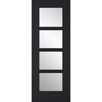 The Vancouver Charcoal Black Pre-Finished 4 Glazed Clear Light Panels Interior Door is a stunning addition to any modern home. This door is part of the Vancouver family and is designed with a sleek, modern style that is sure to impress. The door is pre-finished in a rich charcoal black colour, providing a sophisticated and contemporary look that will complement any interior design. The door is an internal door type, making it perfect for use in any room of your home.