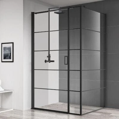 Bring the window-frame look into your home with the Velar Hinged Door Enclosure. It features a stunning, aluminium square frame, giving you the on-trend look of the black Crittal frame which can be used with a side panel to form an enclosure or in recess for a sleek walk-in enclosure.