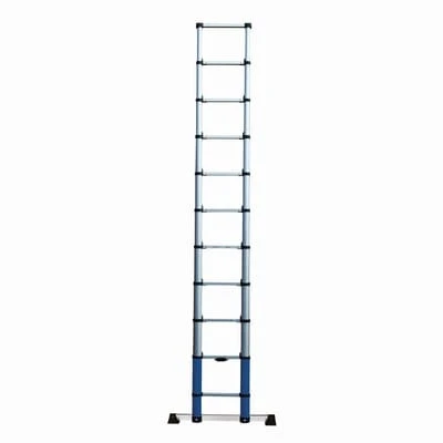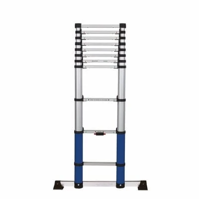 The 3.2m telescopic extension ladder with stabiliser is easily portable and has a closed length of 1.02m, extending to a length of 3.22m. This adjustable ladder has a smaller folded size than standard extension ladders which makes it easy to store, transport, and carry. Other features include extra rung spacing to prevent finger trapping, single handed unlocking system for easy closure, and automatic locking system for security.